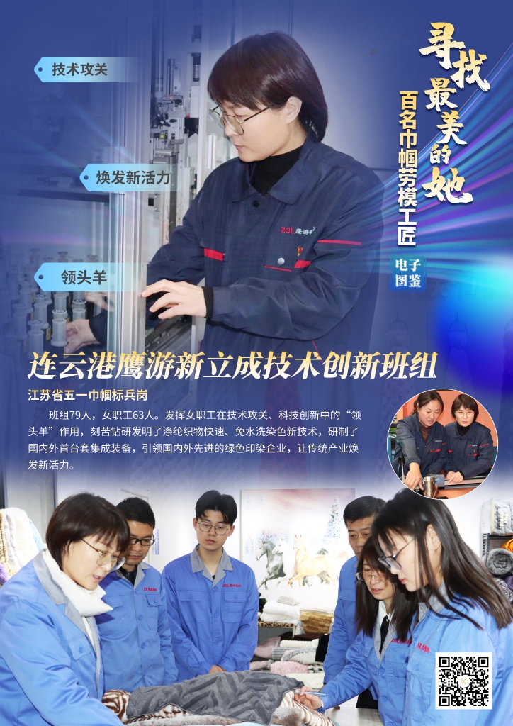 近日,由江蘇省總工會女職工委員會主辦的“尋找最美的她”百名巾幗勞模工匠圖鑒第二批次名單正式發布。共九位女職工代表入選,此次連云港鷹游新立成技術創新班組榮登榜單。