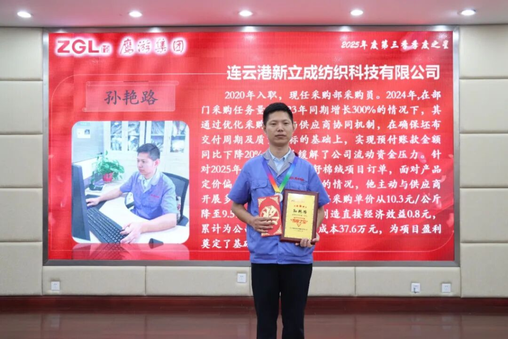 孫艷路,2020年入職鷹游新立成紡織科技公司,現任采購部采購員。其通過優化采購流程與供應商協同機制,有效緩解了公司流動資金壓力。針對項目訂單利潤空間有限的情況,他主動與供應商開展多輪商務洽談,為項目盈利奠定了基礎。